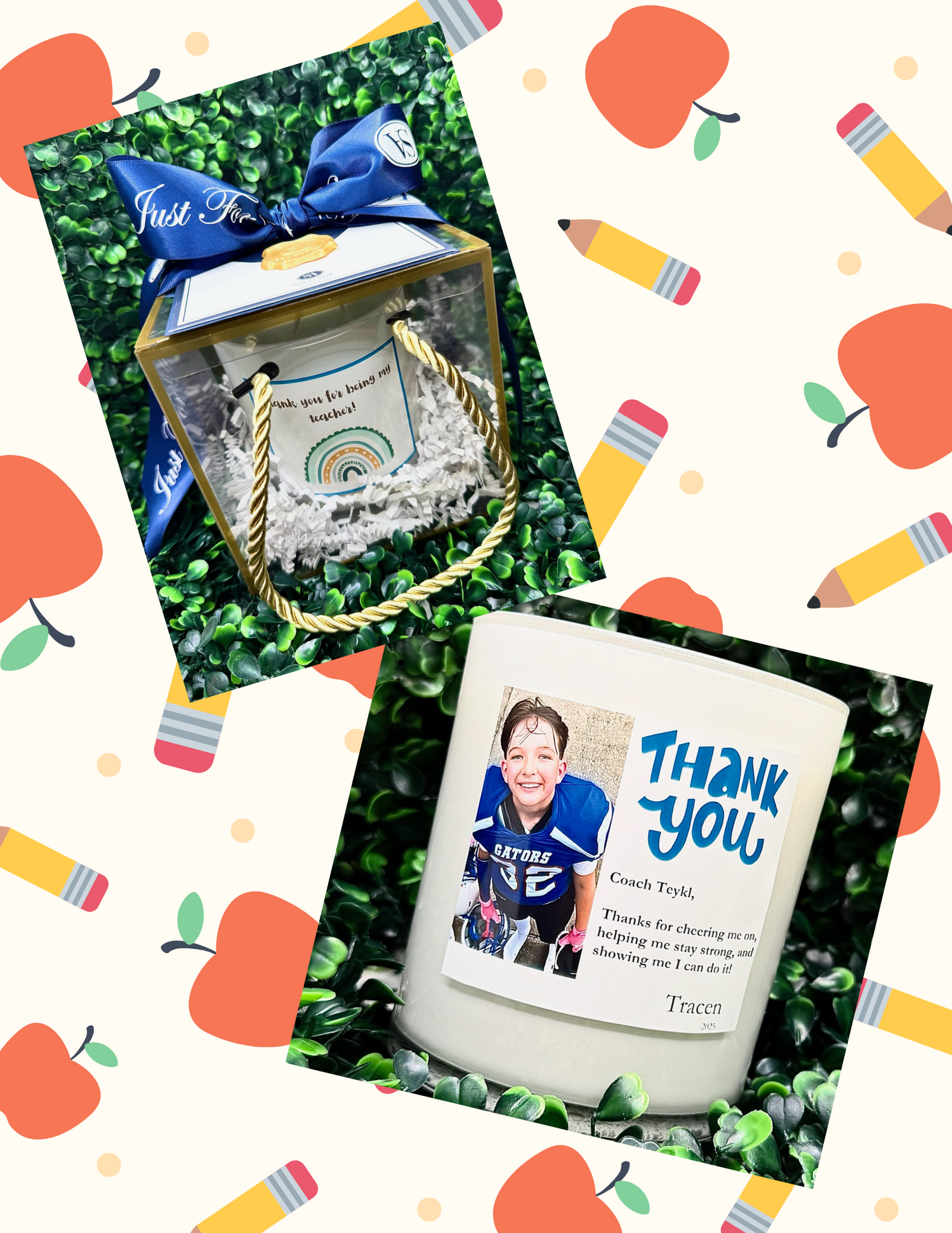 Check out our collection of customizable teacher candles that are the perfect "thank you" for the teachers in your life.